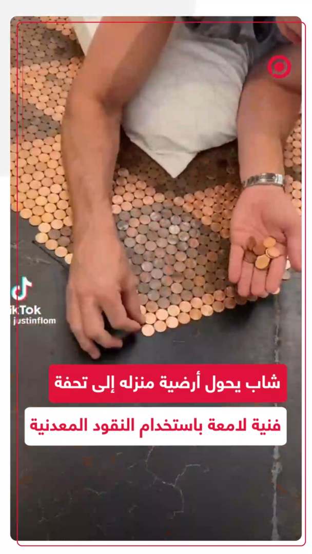 شاب يقرر تحويل أرضية منزله إلى لوحة فنية باستخدام النقود المعدنية، مبتكرا تصميما مميزا.