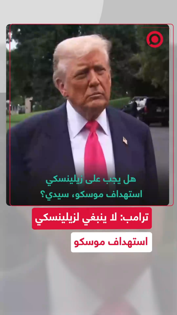 الرئيس الأمريكي دونالد ترامب يجيب سؤال أحد الصحفيين حول إمكانية استهداف زيلينسكي لموسكو أو العمق الروسي