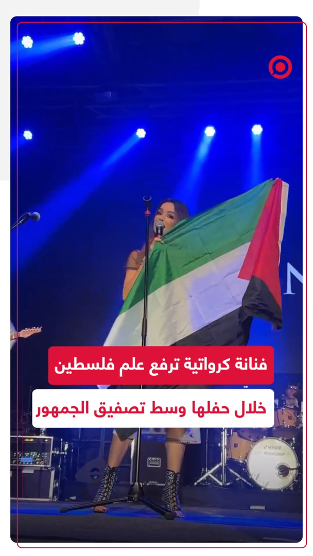 فنانة كرواتية ترفع العلم الفلسطيني على المسرح