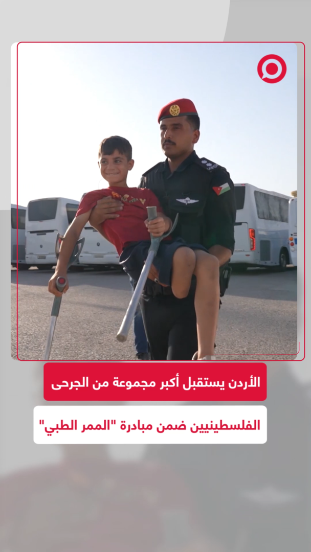 الأردن تفتح أبوابها لاستقبال جرحى غزة.. وصل من قطاع غزة إلى الأردن 35 مريضا، من بينهم أطفال لتلقي العلاج في المستشفيات المحلية، رفقة 21 فردا من عائلاتهم، حيث تأتي هذه الخطوة كأكبر عملية إجلاء حتى الآن ضمن مبادرة "الممر الطبي الأردني".