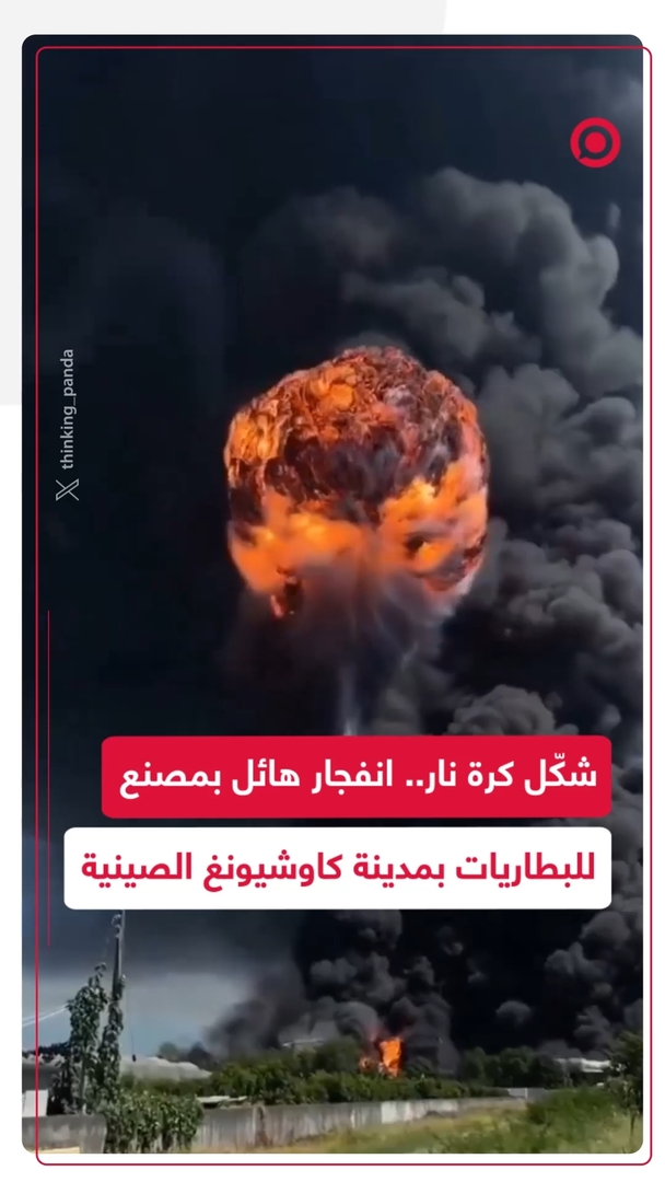 انفجار أضاء سماء المدينة 🔥.. شهدت مدينة كاوشيونغ التايوانية انفجارا ضخما داخل مصنع بطاريات، أسفر عنه إصابة 15 شخصا، وتسبب في تشكل كرة نارية هائلة شوهدت من عدة أحياء.