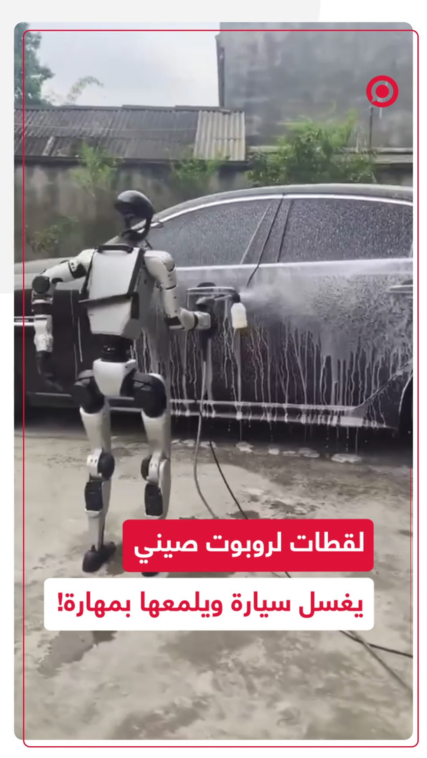 مشاهد للروبوت الصيني طراز "Unitree G1" وهو يقوم بغسل سيارة بالماء والصابون ثم ينشفها ويجعلها تلمع بمهارة دون تدخل بشري.