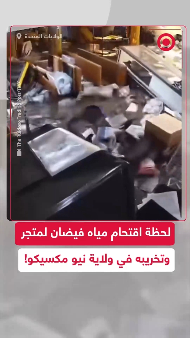 كاميرا مراقبة توثق لحظة اقتحام فيضان عارم لأحد المتاجر في ولاية نيو مكسيكو الأمريكية، حيث اجتاحت المياه المكان مدمرة محتوياته ومسببة خسائر كبيرة.