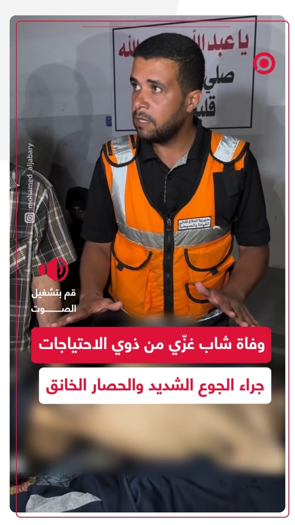 مات لأنه لم يجد ما يأكله.. توفي شاب فلسطيني من ذوي الاحتياجات الخاصة في قطاع غزة، متأثرا بالجوع الشديد نتيجة الحصار الخانق الذي تفرضه إسرائيل، وسط ظروف إنسانية مأساوية تمس أبسط حقوق الحياة.
