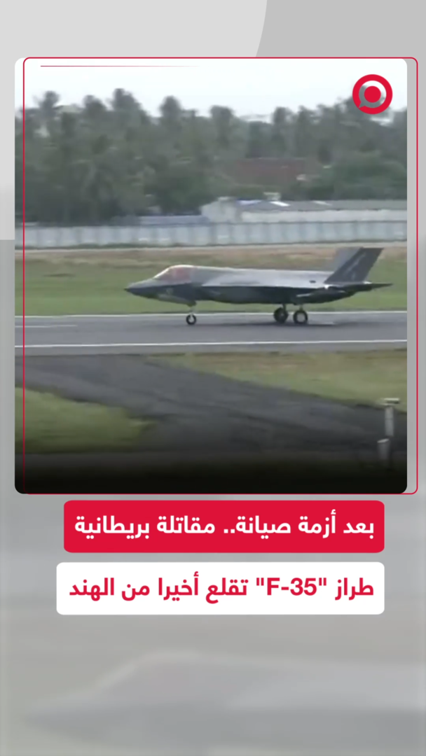 بعد أزمة استمرت أكثر من شهر خضعت خلالها لصيانة شاملة بمشاركة فرق فنية من لندن، تمكنت مقاتلة بريطانية طراز "F-35" أخيرا من الإقلاع، بعد أن كانت عالقة في الهند.