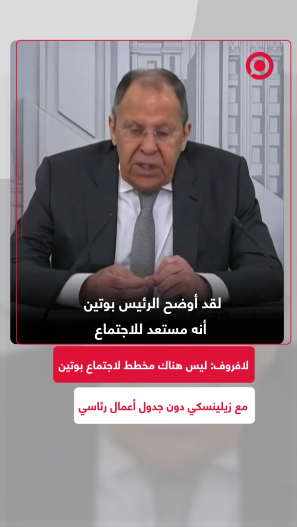 وزير الخارجية الروسي سيرغي لافروف يؤكد عدم وجود أي مخطط لعقد اجتماع بين الرئيس الروسي فلاديمير بوتين وزيلينسكي دون جدول أعمال رئاسي.