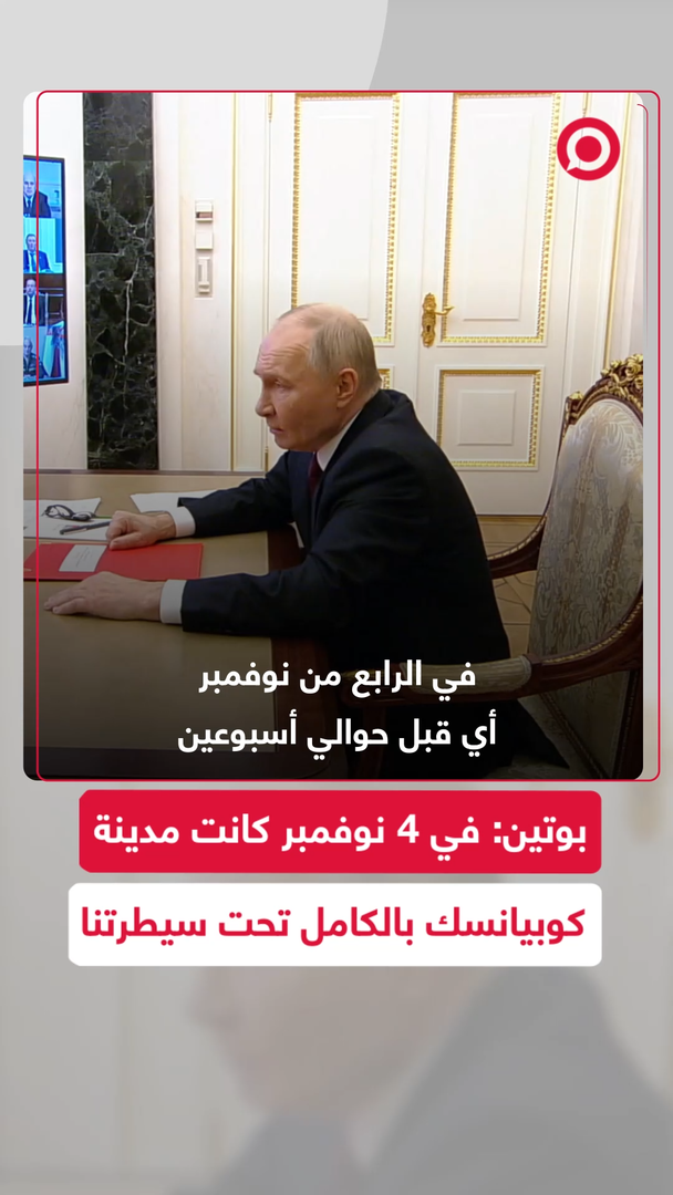 بوتين: في 4 نوفمبر كانت مدينة كوبيانسك بالكامل تحت سيطرتنا