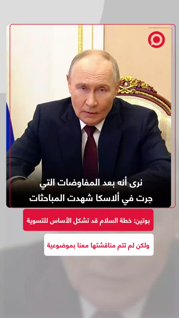 بوتين: خطة السلام قد تشكل الأساس للتسوية ولكنها لم تُناقش معنا بالتفصيل