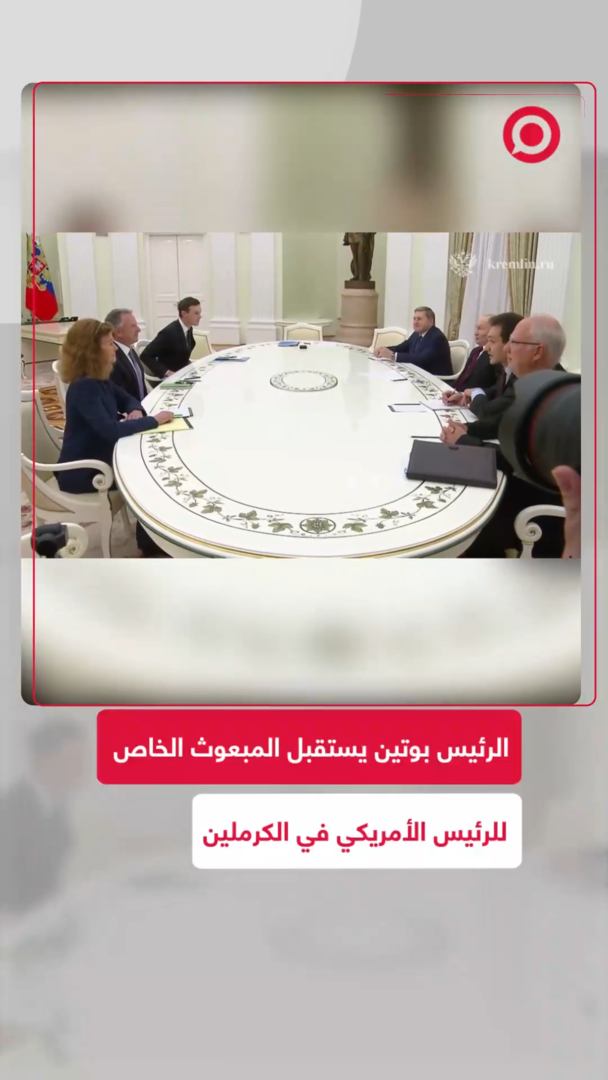 الرئيس الروسي فلاديمير بوتين يستقبل المبعوث الخاص للرئيس الأمريكي ستيفن ويتكوف ورجل الأعمال جاريد كوشنر في الكرملين، كما يحضر الاجتماع كل من مساعد الرئيس الروسي يوري أوشاكوف ورئيس صندوق الاستثمار الروسي كيريل دميترييف