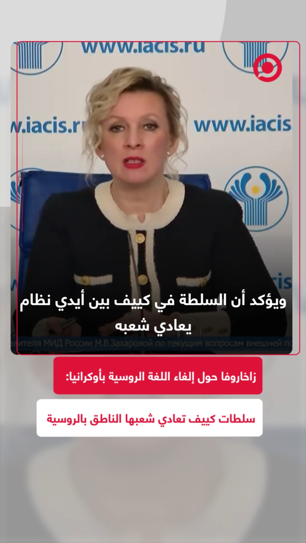 زاخاروفا تعلق على وثيقة البرلمان الأوكراني لإنهاء حماية اللغة الروسية في البلاد