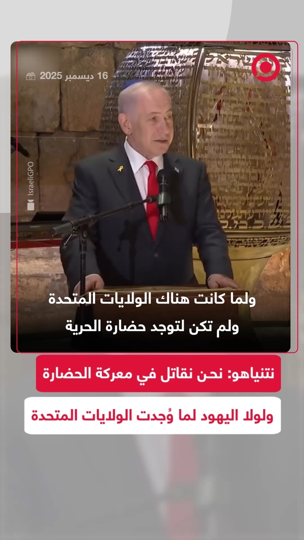 رئيس الوزراء الإسرائيلي بنيامين نتنياهو، أكد خلال خطاب ألقاه مؤخرا، أن إسرائيل تخوض ما وصفه بـ"معركة الحضارة والحرية" نيابة عن العالم. مضيفا أنه "لولا اليهود وثوراتهم التاريخية لما كان هناك وجود للولايات المتحدة الأمريكية"، وفق تعبيره خلال الخطاب. #نتنياهو #خطاب #معركة #ريل #فيديو #viral #اكسبلور