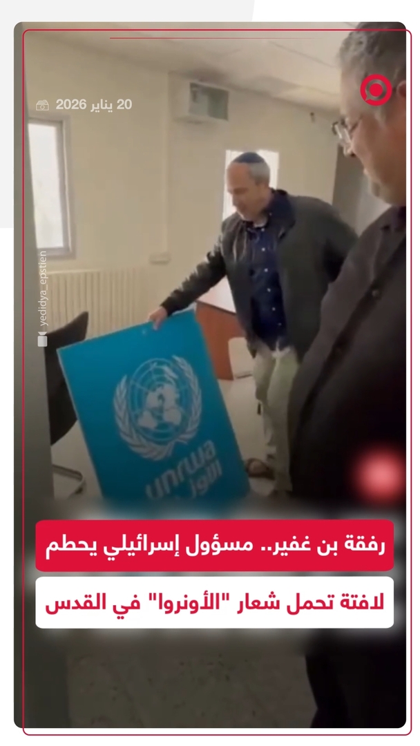 أظهرت مشاهد متداولة تحطيم نائب رئيس بلدية القدس لافتة تحمل شعار وكالة "الأونروا"، خلال اقتحام المقر برفقة وزير الأمن القومي الإسرائيلي إيتمار بن غفير، تزامنا مع هدم جرافات إسرائيلية منشآت تابعة للوكالة داخل الموقع. #بن_غفير #الأونروا #القدس #ريل #فيديو #viral #اكسبلور