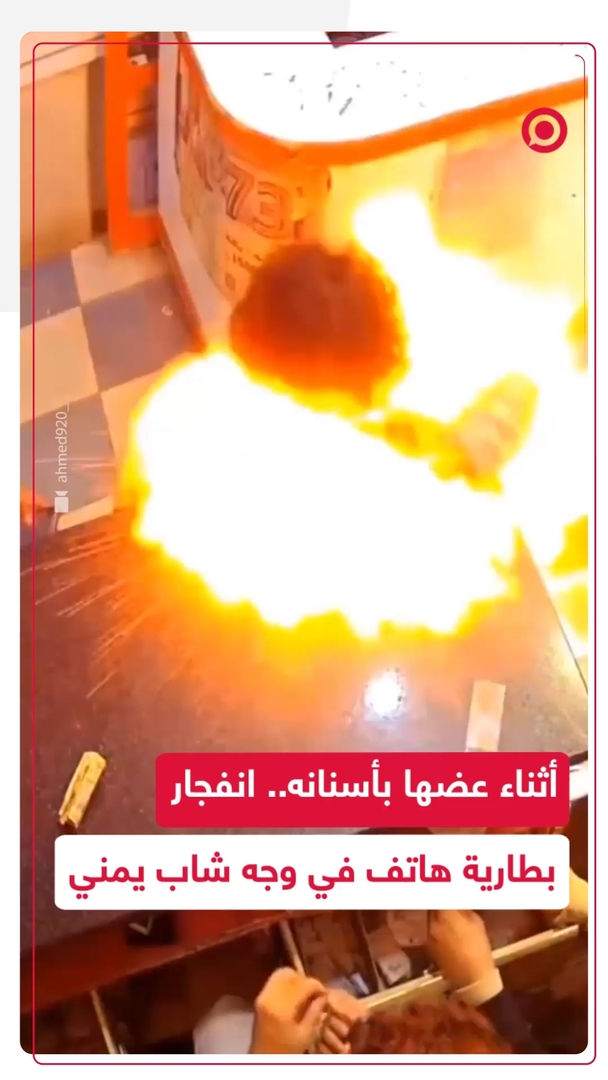 تصرُّف غير آمن أدى إلى إصابته.. وثّقت كاميرا مراقبة داخل متجر لبيع إكسسوارات الهواتف المحمولة لحظة انفجار بطارية ليثيوم في وجه شاب يمني، أثناء قيامه بعضّها بأسنانه. #حادث #انفجار #بطارية #ريل #فيديو #viral #اكسبلور