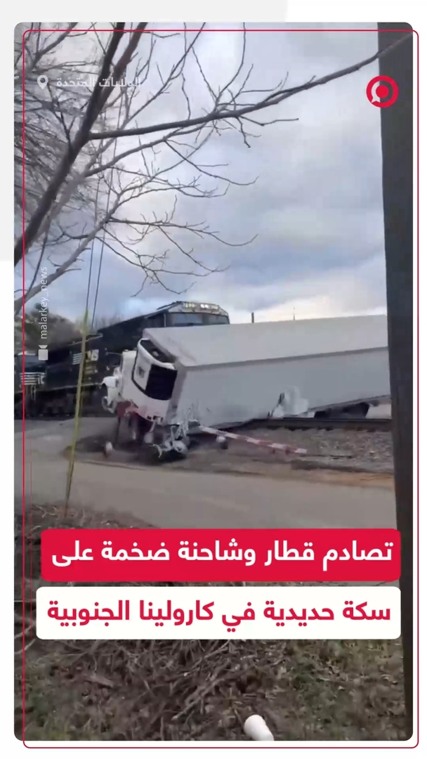 تصادم قطار وشاحنة ضخمة على سكة حديدية في ولاية كارولينا الجنوبية الأمريكية