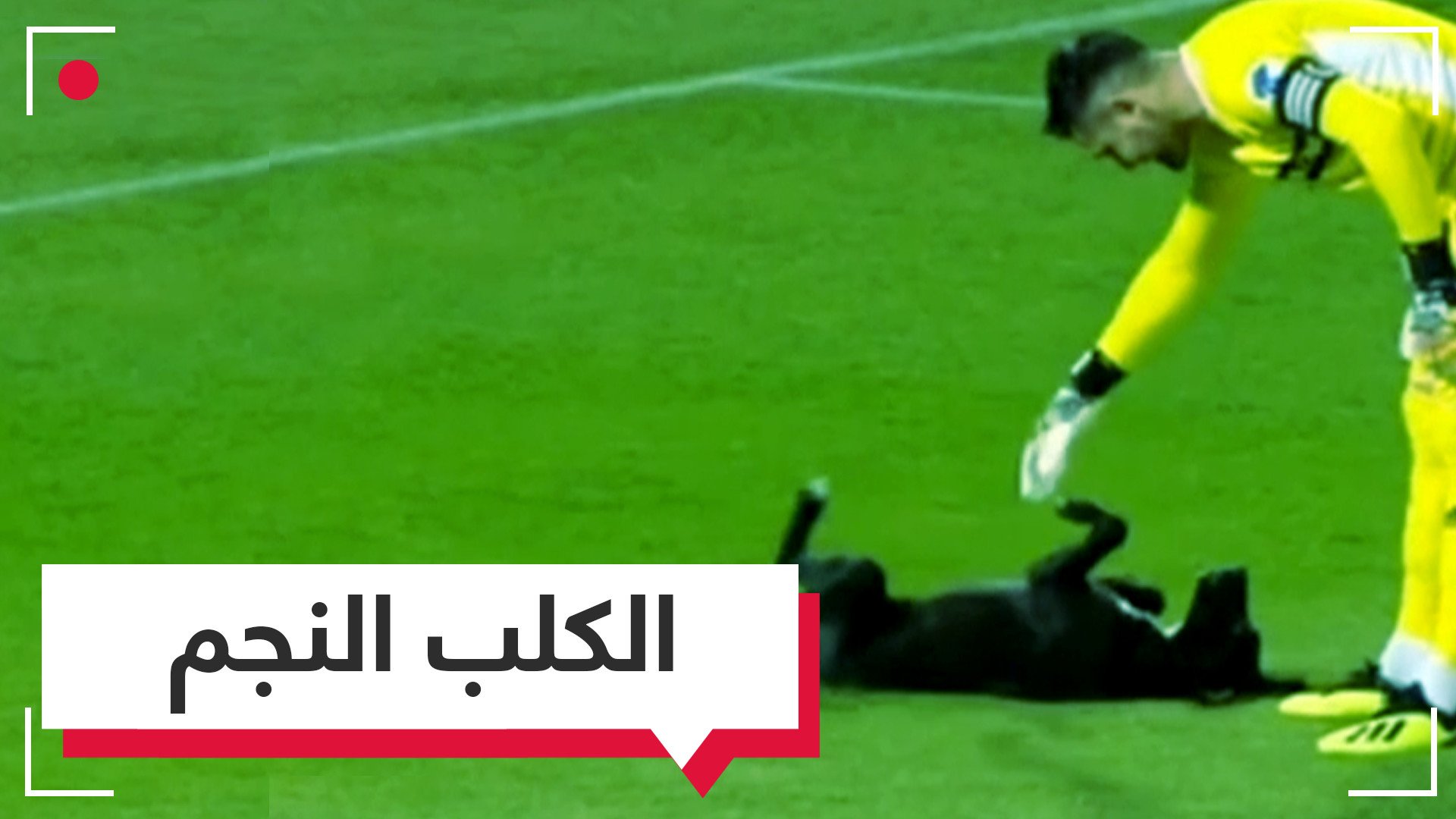 كلب يقتحم الملعب ويخطف الأضواء معطلا المبارة وممازحا اللاعبين