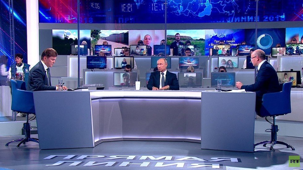 و"الخط المباشر مع بوتين" هو فعالية سنوية، تجرى هذا العام للمرة الـ17، ويجيب خلالها الرئيس الروسي عن أسئلة المواطنين على الهواء مباشرة، وبإمكان الجميع طرح أسئلتهم عبر اتصال هاتفي أو رسالة SMS، أو تسجيل فيديو.