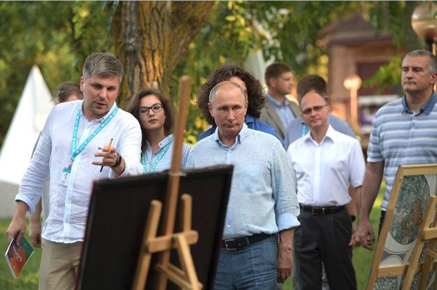 خلال زيارة عمل إلى القرم، التقى الرئيس الروسي فلاديمير بوتين مع فنانين شباب، وتركز الحديث خلال اللقاء على قضايا دعم المشاريع الفنية، ورقابة الدولة على الإبداع وبعض الأمور الشخصية.
