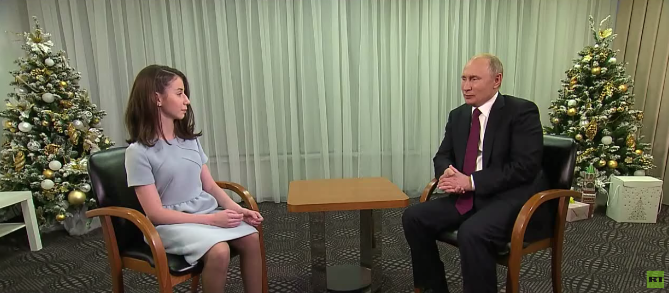 وأجرى الرئيس الروسي بعد إتمامه المؤتمر الصحفي السنوي الذي عقده اليوم الخميس، مقابلة مع ريغينا البالغة من العمر 17 عاما استغرقت 20 دقيقة أجاب خلالها عن أسئلتها.
