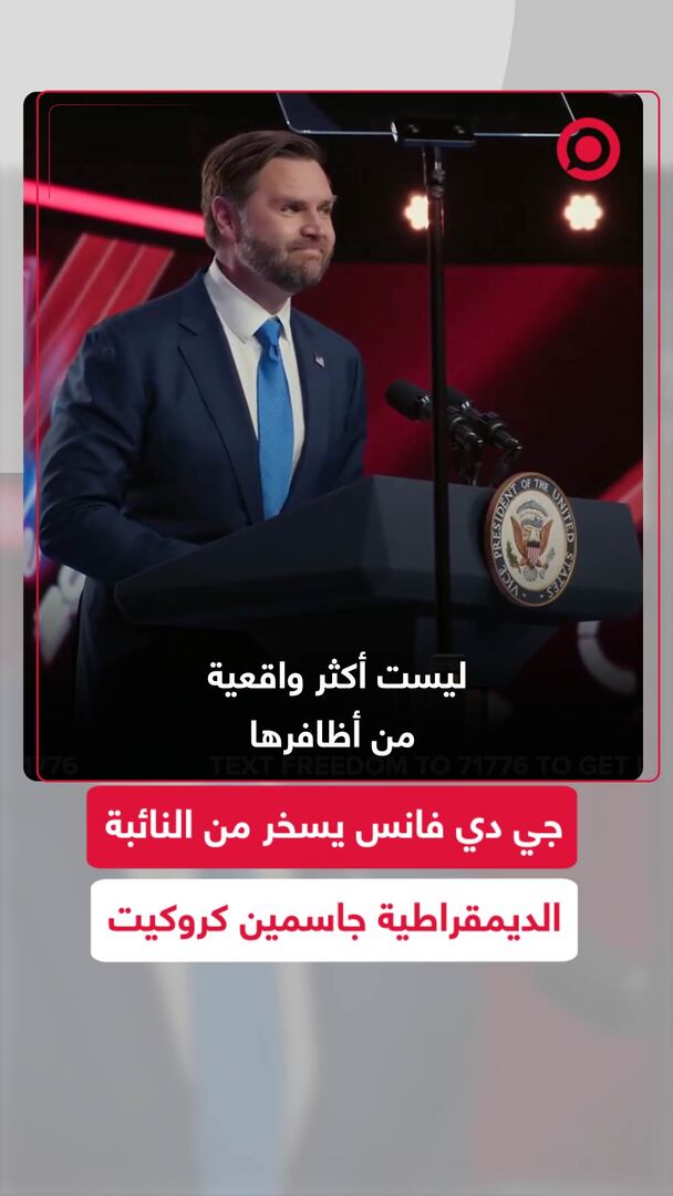 Play/Pause Mute/Unmute جي دي فانس يسخر من النائبة الديمقراطية جاسمين كروكيت Save post Share Facebook X VK.com Telegram
