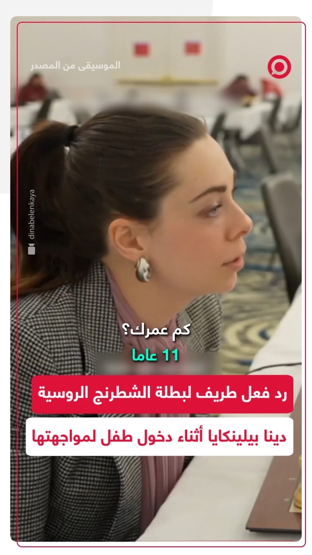 Play/Pause Mute/Unmute رد فعل بطلة الشطرنج الروسية دينا بيلينكايا أثناء دخول طفل لمواجهتها Save post Share Facebook X VK.com Telegram