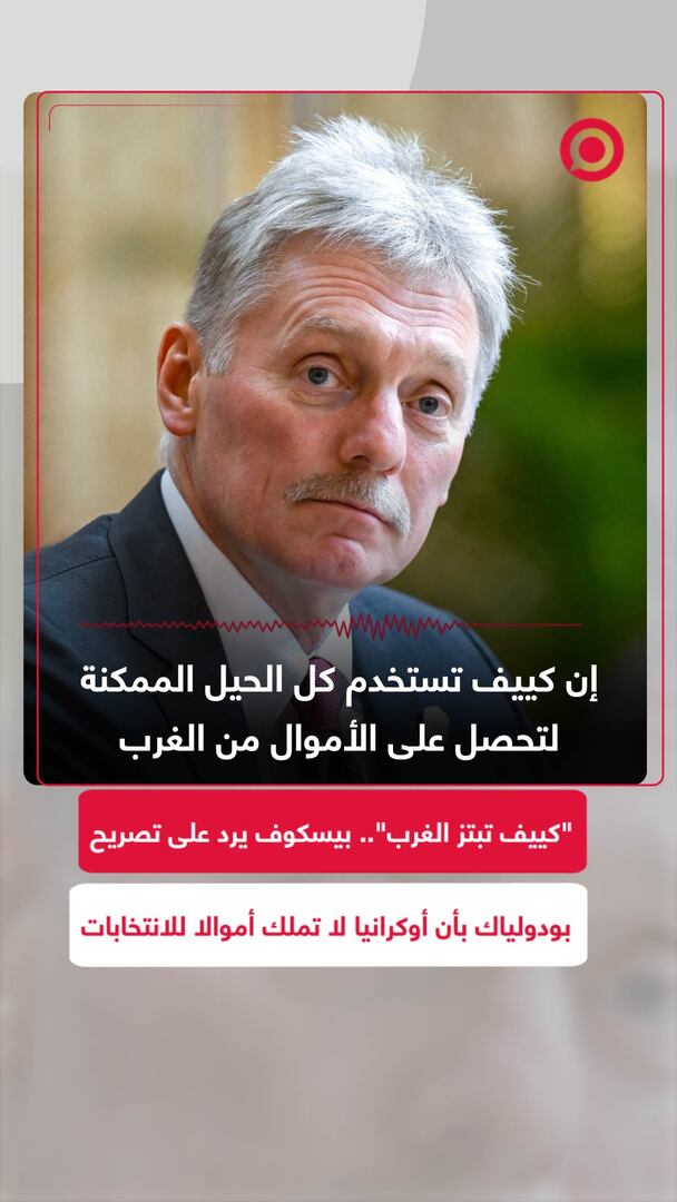 Play/Pause Mute/Unmute "كييف تبتز الغرب".. بيسكوف يرد على تصريح بودولياك بأن أوكرانيا لا تملك أموالا للانتخابات Save post Share Facebook X VK.com Telegram