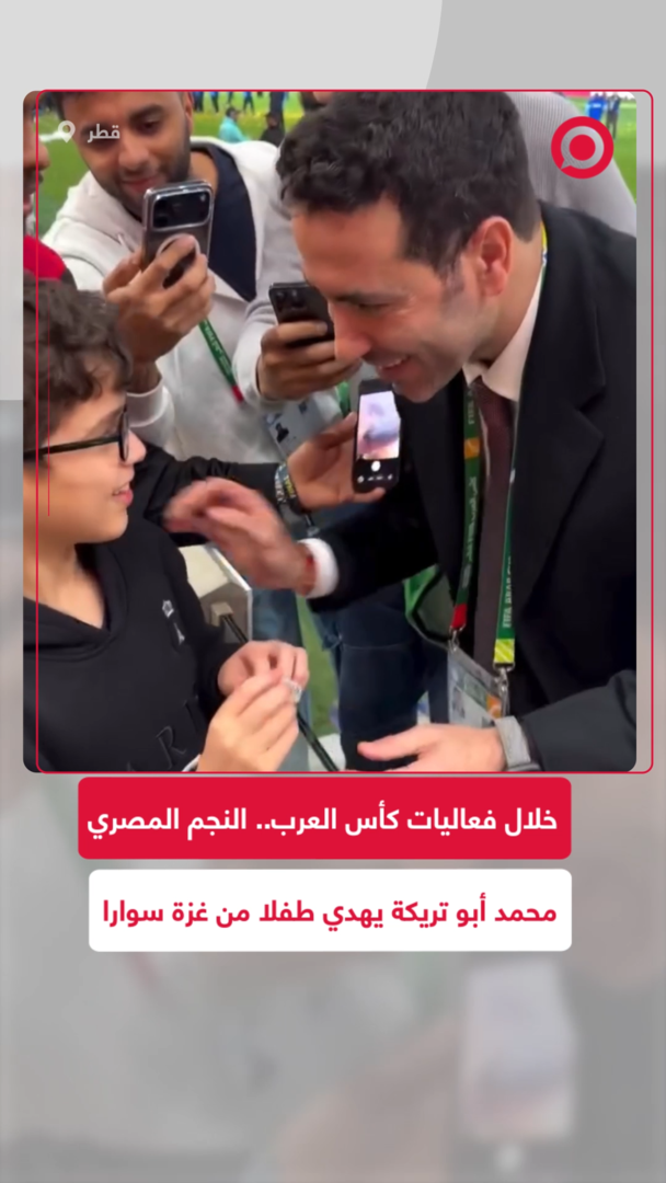 Play/Pause Mute/Unmute خلال فعاليات كأس العرب.. النجم المصري محمد أبو تريكة يهدي طفلا من غزة سوارا Save post Share Facebook X VK.com Telegram
