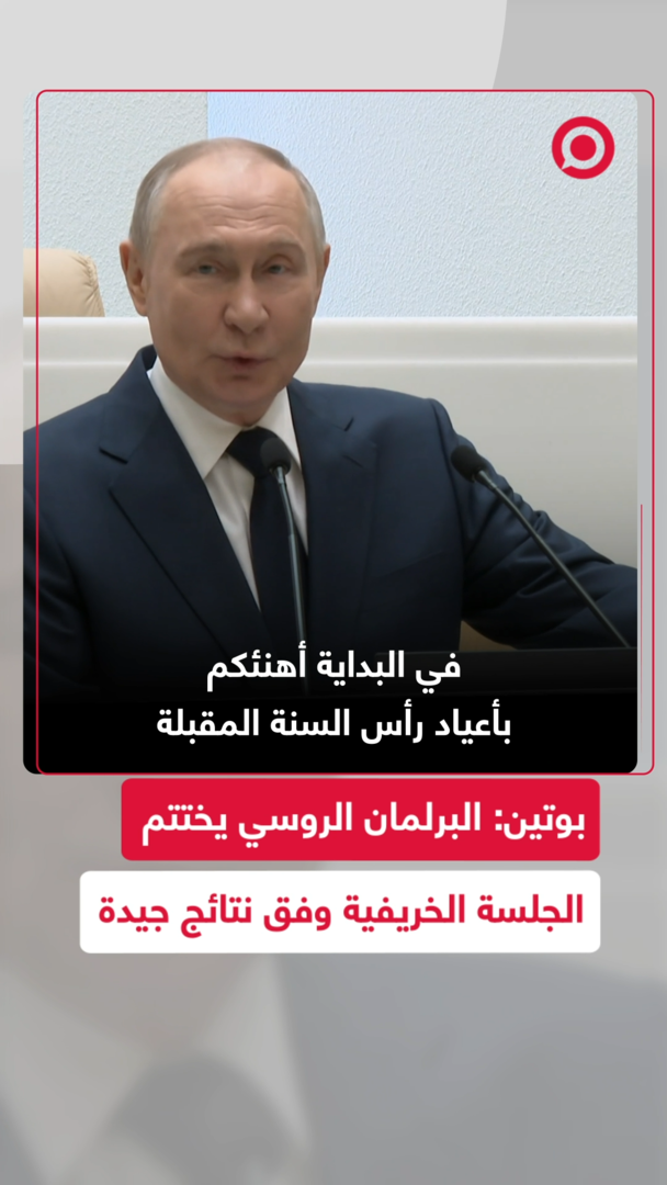 Play/Pause Mute/Unmute بوتين يعلن ختام الدورة الخريفية للبرلمان الروسي بنتائج جيدة Save post Share Facebook X VK.com Telegram