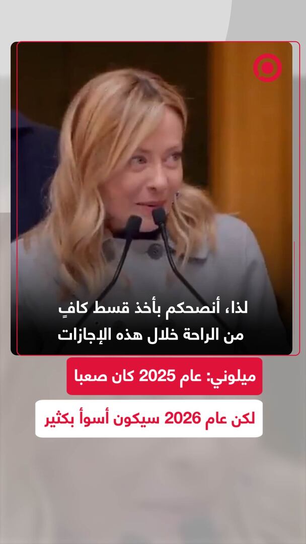 Play/Pause Mute/Unmute ميلوني: عام 2025 كان صعبا لكن عام 2026 سيكون أسوأ بكثير Save post Share Facebook X VK.com Telegram