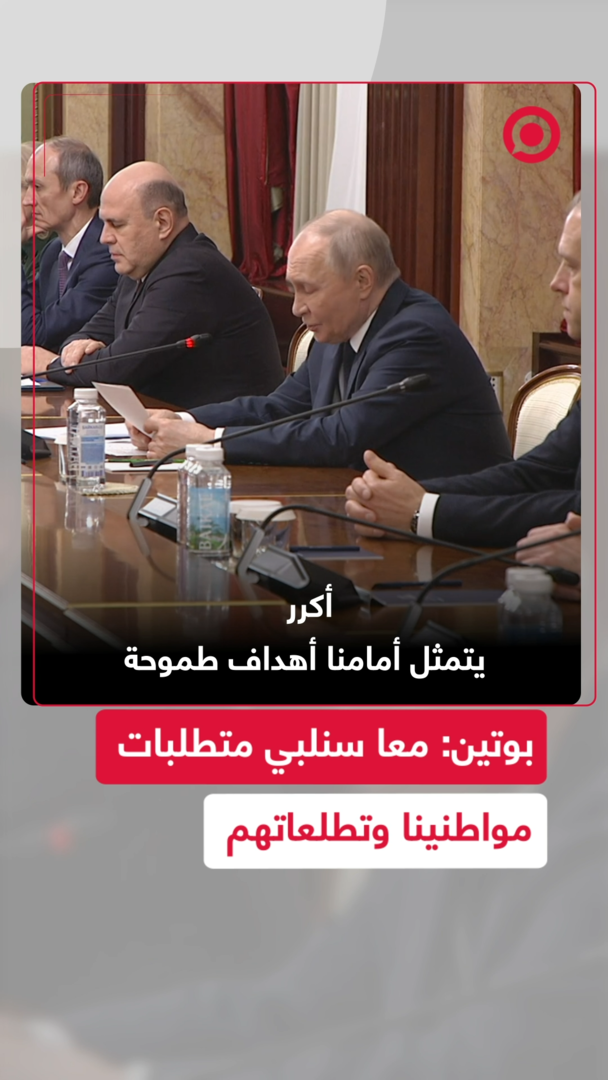 Play/Pause Mute/Unmute بوتين: يجب علينا العمل بكامل طاقاتنا لتلبية تطلعات مواطنينا Save post Share Facebook X VK.com Telegram