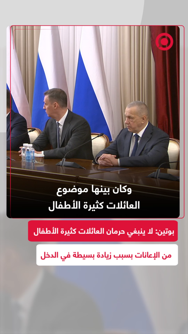 Play/Pause Mute/Unmute بوتين يأمر الحكومة والدوما بحلول مرنة لدعم العائلات الكبيرة دون حرمانها من الإعانات Save post Share Facebook X VK.com Telegram