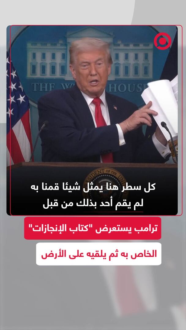 Play/Pause Mute/Unmute ترامب يستعرض "كتاب الإنجازات" الخاص به ثم يلقيه على الأرض Save post Share Facebook X VK.com Telegram