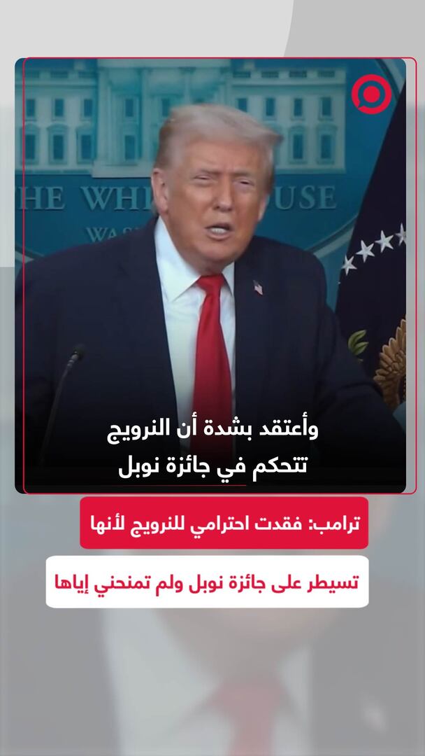 Play/Pause Mute/Unmute ترامب: فقدت احترامي للنرويج لأنها تسيطر على جائزة نوبل ولم تمنحني إياها Save post Share Facebook X VK.com Telegram