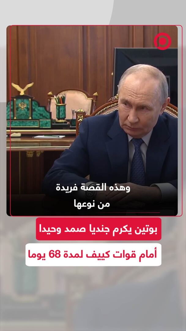 Play/Pause Mute/Unmute بوتين يكرم جنديا صمد وحيدا أمام قوات كييف لمدة 68 يوما Save post Share Facebook X VK.com Telegram