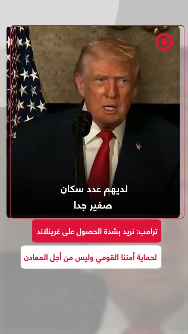 Play/Pause Mute/Unmute ترامب: نريد غرينلاند من أجل الأمن القومي الأمريكي Save post Share Facebook X VK.com Telegram