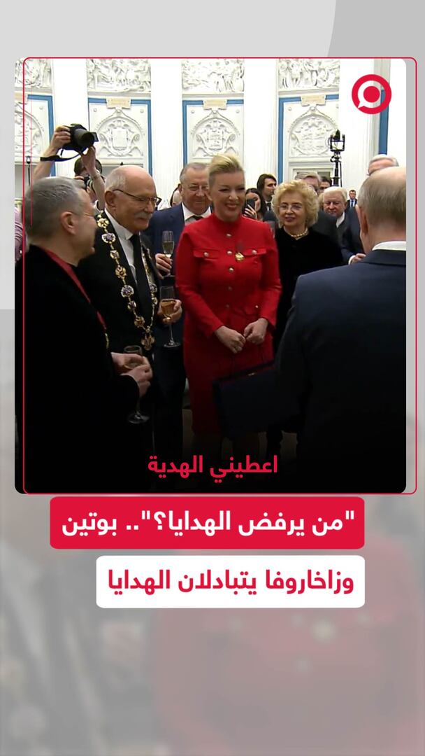 Play/Pause Mute/Unmute "من يرفض الهدايا؟".. بوتين وزاخاروفا يتبادلان الهدايا Save post Share Facebook X VK.com Telegram