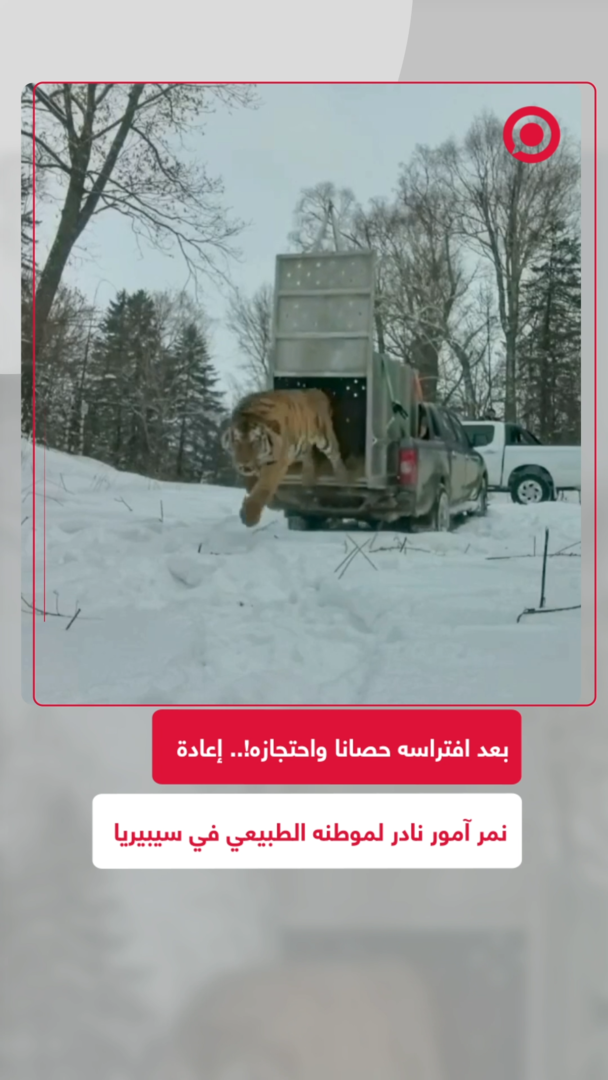 Play/Pause Mute/Unmute لحظة إطلاق نمر نادر إلى موطنه الطبيعي في غابات سيبيريا Save post Share Facebook X VK.com Telegram