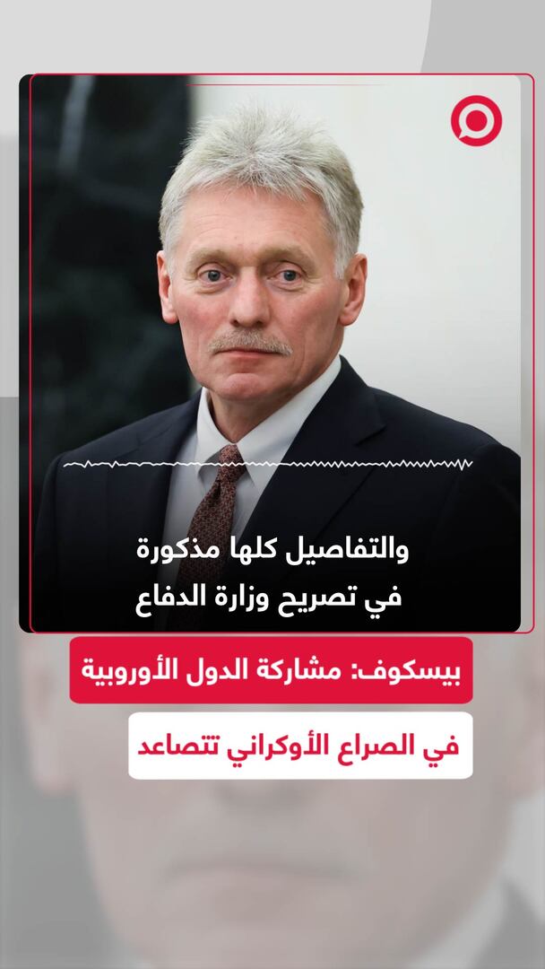 Play/Pause Mute/Unmute بيسكوف: مشاركة دول أوروبية في الصراع الأوكراني تتصاعد Save post Share Facebook X VK.com Telegram