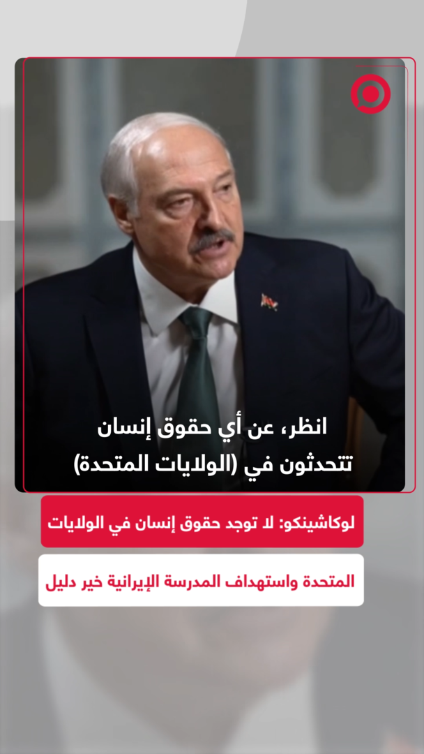Play/Pause Mute/Unmute لوكاشينكو: لا توجد حقوق إنسان في الولايات المتحدة Save post Share Facebook X VK.com Telegram