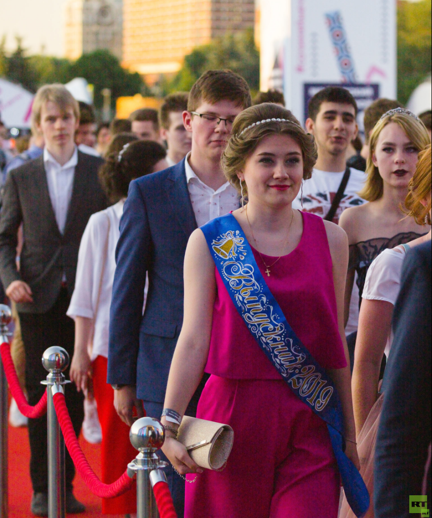 شهدت العاصمة الروسية موسكو الخميس 20 يونيو الجاري احتفالات مميزة بمناسبة انتهاء طلاب المدارس الثانوية من امتحانات التخرج في المدرسة.
