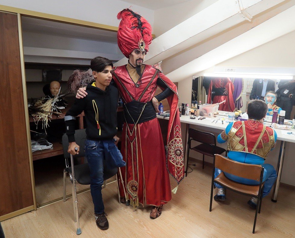 أثناء وجوده في موسكو، زار الطفل قاسم الكاظمي، بطل صورة "الرغبة في الحياة" السيرك الروسي، واستمتع بحكاية علاء الدين يؤديها الفنانون الروس.