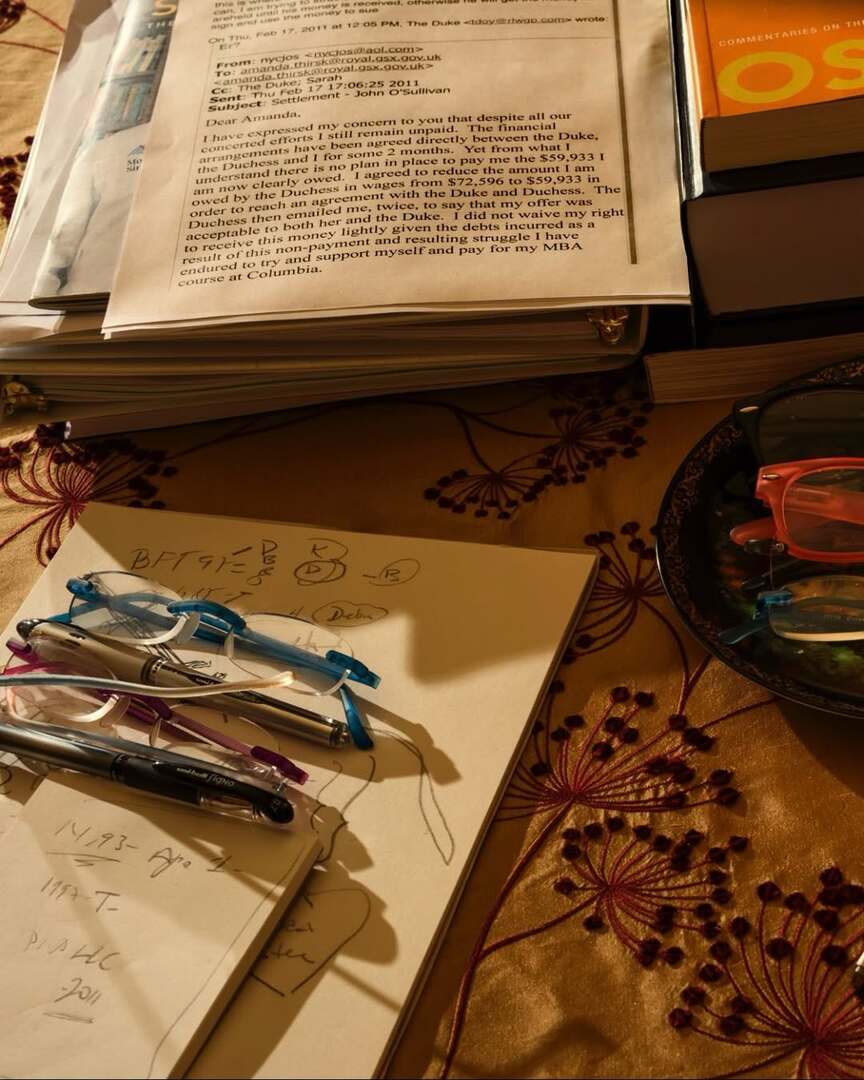 وجاء في البريد الإلكتروني: "لقد أعربت لكم عن قلقي من أنني رغم كل جهودنا المشتركة، ما زلت لم أتلق مستحقاتي.. وقد تم الاتفاق على الترتيبات المالية مباشرة بين الدوق والدوقة وأنا منذ شهرين تقريبا.. ومع ذلك، حسب ما فهمت، لا توجد خطة موضوعة لدفع مبلغ 59933 دولارا أمريكيا الذي أستحقه بوضوح الآن".