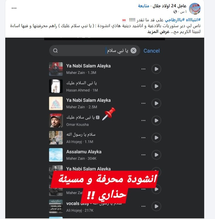 وجاء ذلك عبر تحريف كلمات أناشيد دينية ومدائح نبوية شهيرة، وإحلالها بعبارات مسيئة تطاول النبي محمد، ما أثار موجة غضب واسعة واستنكاراً جماهيرياً عارماً.