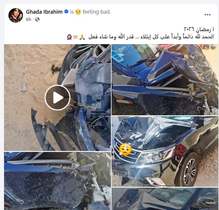 ونشرت الفنانة عبر حسابها الشخصي على موقع "فيسبوك" صوراً توضح حجم الدمار الذي لحق بسيارتها جراء التصادم، وعلقت عليها قائلة: "قدر الله وما شاء فعل"، دون الكشف عن تفاصيل إضافية تتعلق بحالتها الصحية أو ملابسات وقوع الحادث.