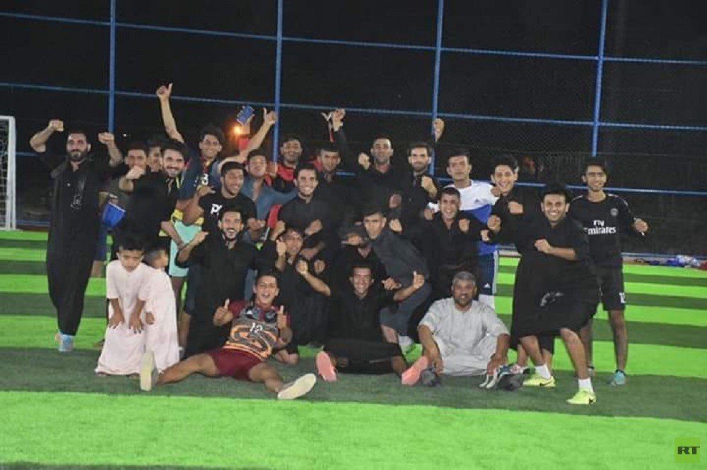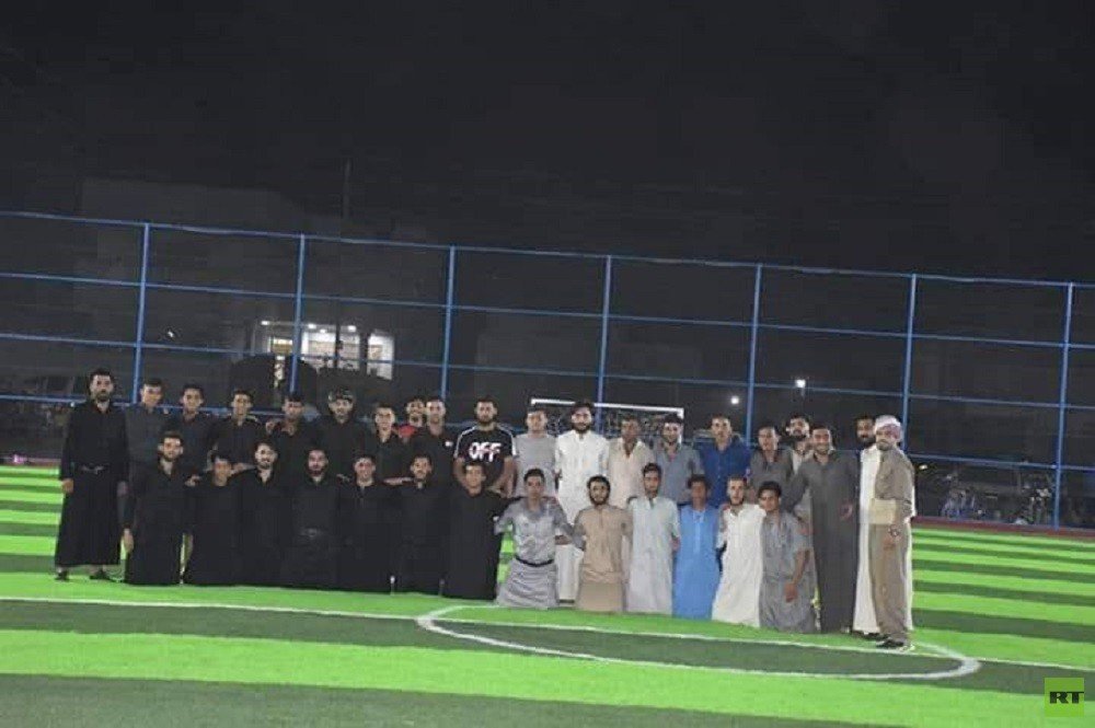 بالصور.. عراقيون يلعبون مباراة كرة قدم بأغرب زي شهدته الملاعب