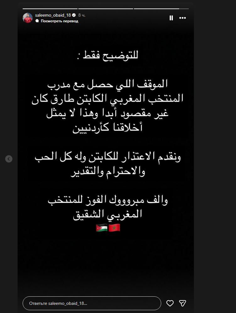 الموقف اللي حصل مع مدرب المنتخب المغربي الكابتن طارق كان غير مقصود ابدا وهذا لا يمثل أخلاقنا كأردنيين.