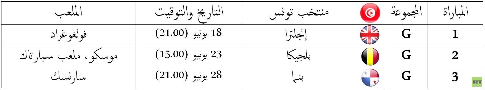 يستهل المنتخب التونسي مشواره في مونديال روسيا 2018، يوم الاثنين 18 يونيو/ حزيران المقبل، في مدينة فولغوغراد، بمواجهة منتخب إنجلترا.