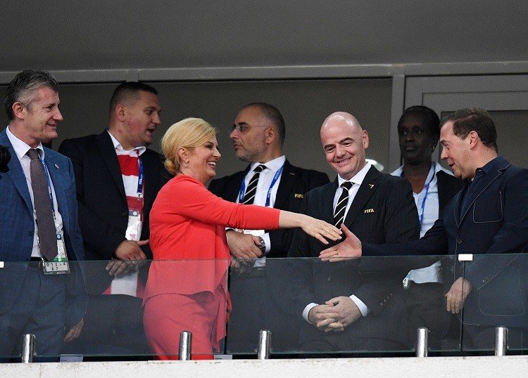 خطفت رئيسة كرواتيا كوليندا غرابار كيتاروفيتش الأضواء على مدرجات ملعب "فيشت" في مدينة سوتشي، باحتفالها بتأهل منتخب بلادها للدور قبل النهائي لبطولة كأس العالم لكرة القدم 2018.