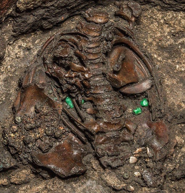 وتشمل القرابين التي اكتشفت حديثا، نمرا مزخرفا يرتدي زي محارب، وطفلا يرتدي ملابس تشبه إله الحرب لدى شعب الأزتك وشعار إله الشمس.