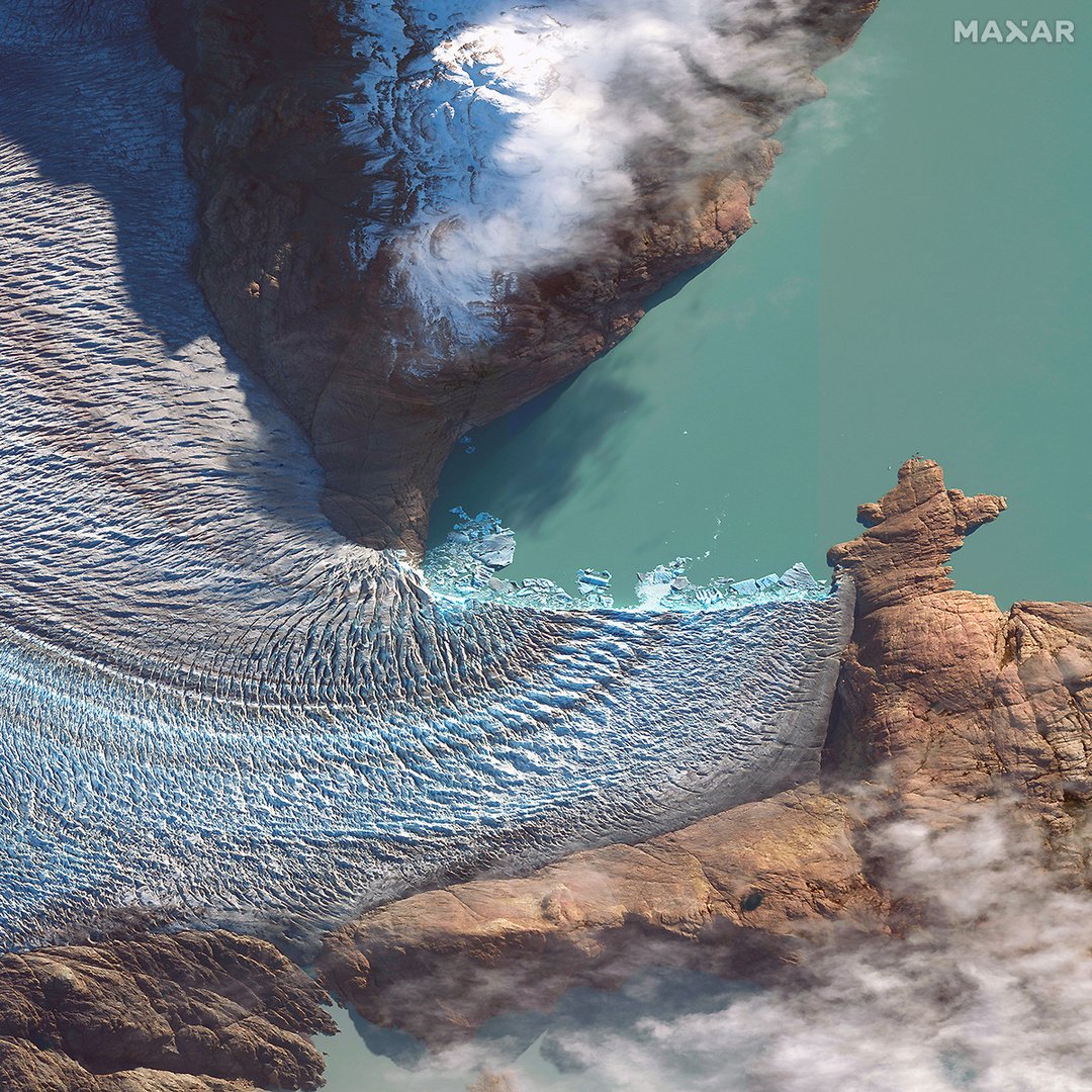 وتُظهر صورة القمر الصناعي WorldView-3 حقل فيدما الجليدي في الأرجنتين في 15 مايو 2016. وينتهي النهر الجليدي في بحيرة فيدما، التي تجمع مياه الذوبان الجليدية.