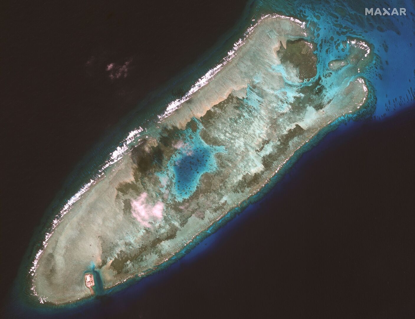 وتُظهر صور Maxar عمليات الإنشاء فيما يعرف بـFiery Cross Reef من 2013 إلى 2017.